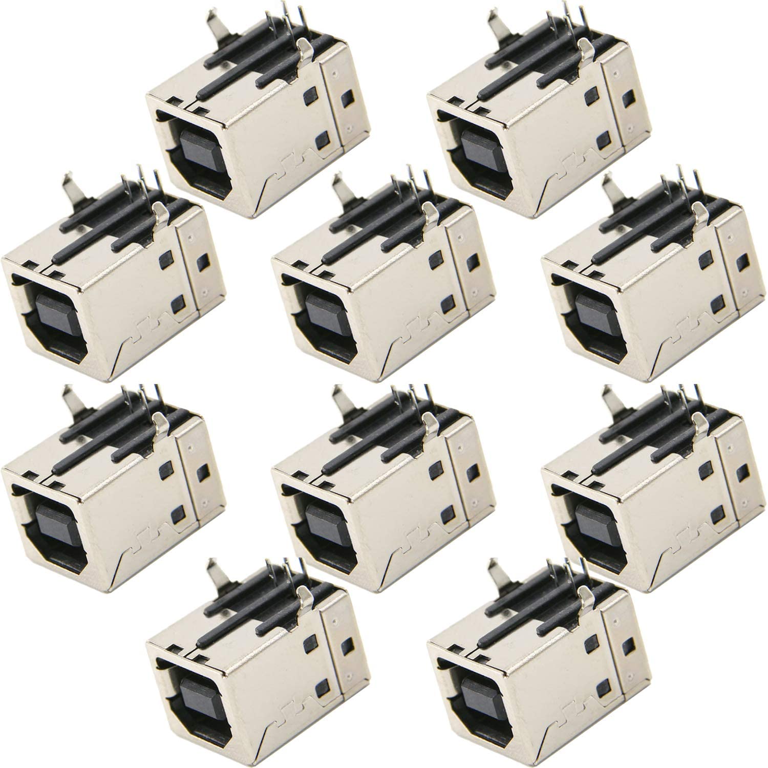 flashtree 10pcs USB Female Type-B Port 4-Pin Right Angle PCB DIP Jack Socket 10 Pack