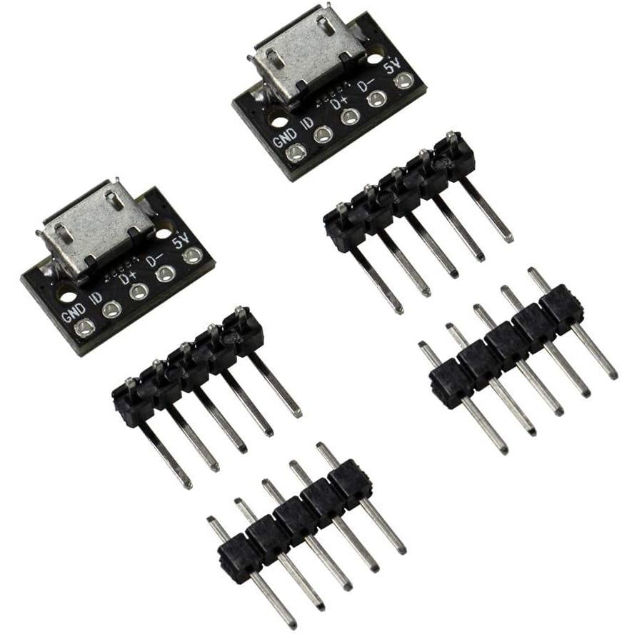 flashtree 2pcs USB Micro Female Breakout Board (5 Pins Output 2.54mm 100mil Pitch)