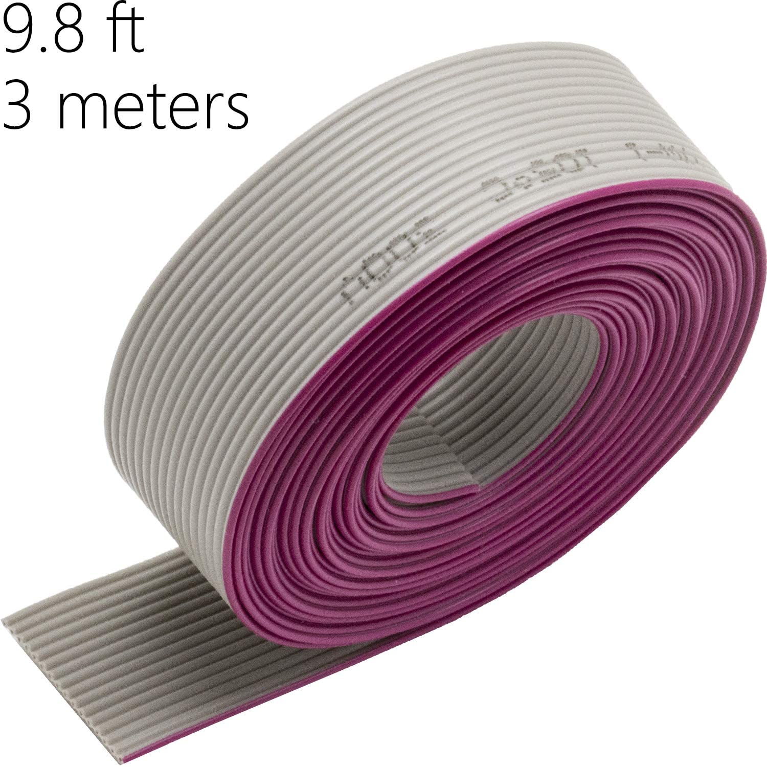 flashtree 9.8FT 3 Meters Flat Ribbon Cable 16P Grey IDC Wire 1.27mm Pitch for 2.54mm connectors