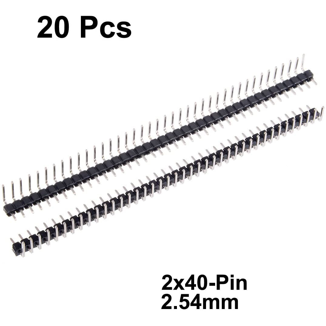 flashtree 20Pcs 2.54mm Pitch 40P Single Row Curved Connector Pin Header Strip for Arduino Prototype Shield