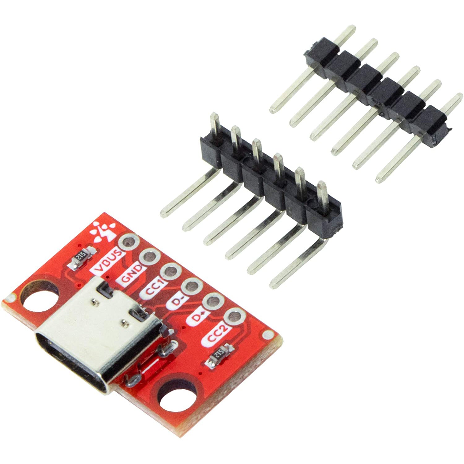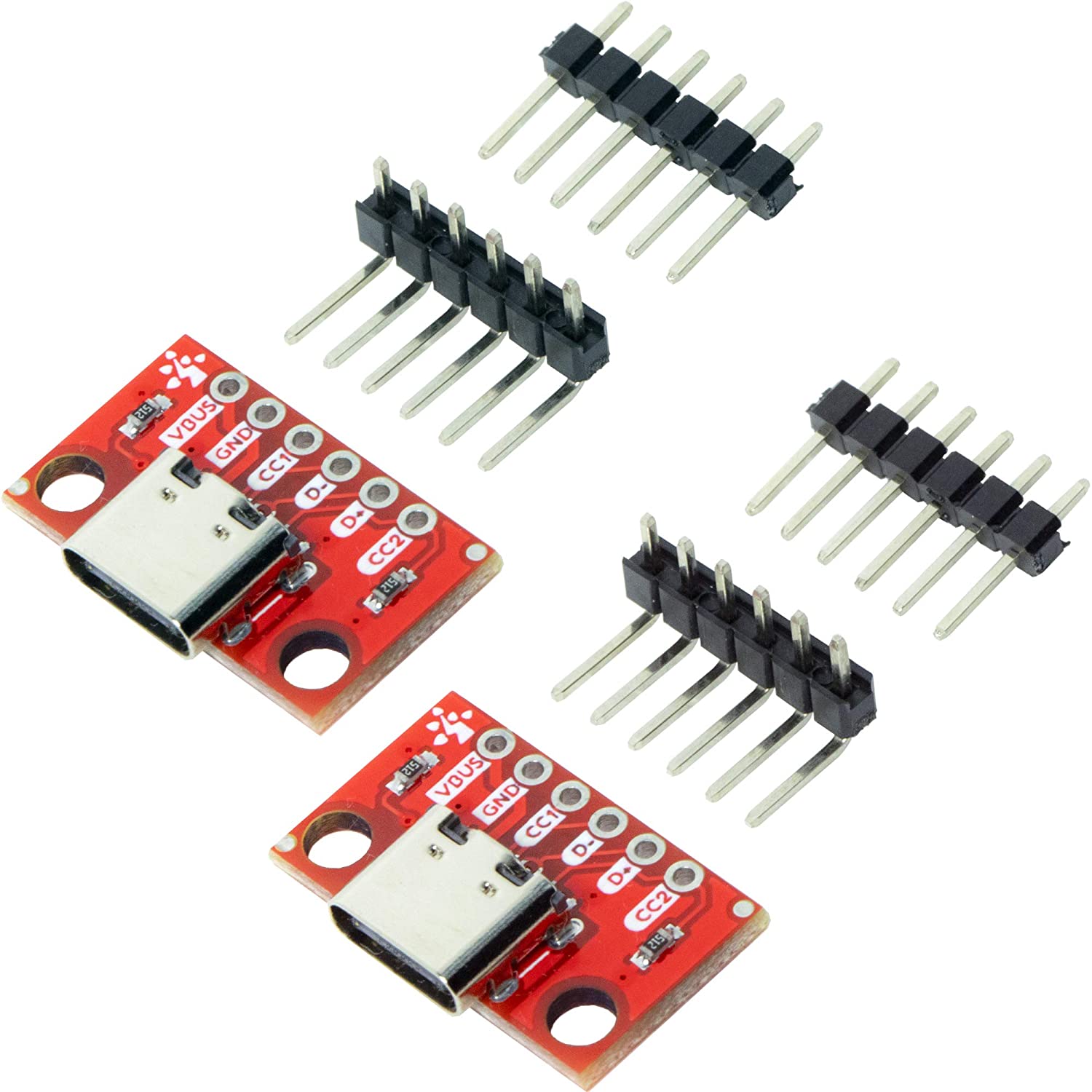 flashtree 2pcs USB Type-C Female Breakout Board 6 pins Output 2 CC Pins 5K1 Res (2.54mm 100mils Pitch)
