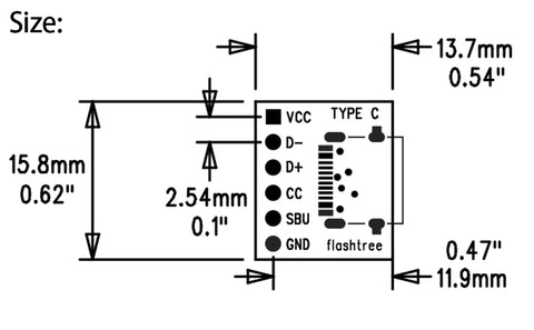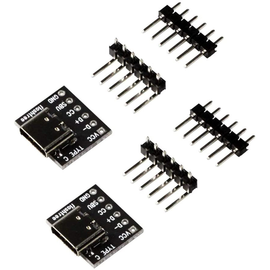 flashtree 2pcs USB Type-C Female Breakout Board 6 pins Out (2.54mm 100mils Pitch) CC SBU