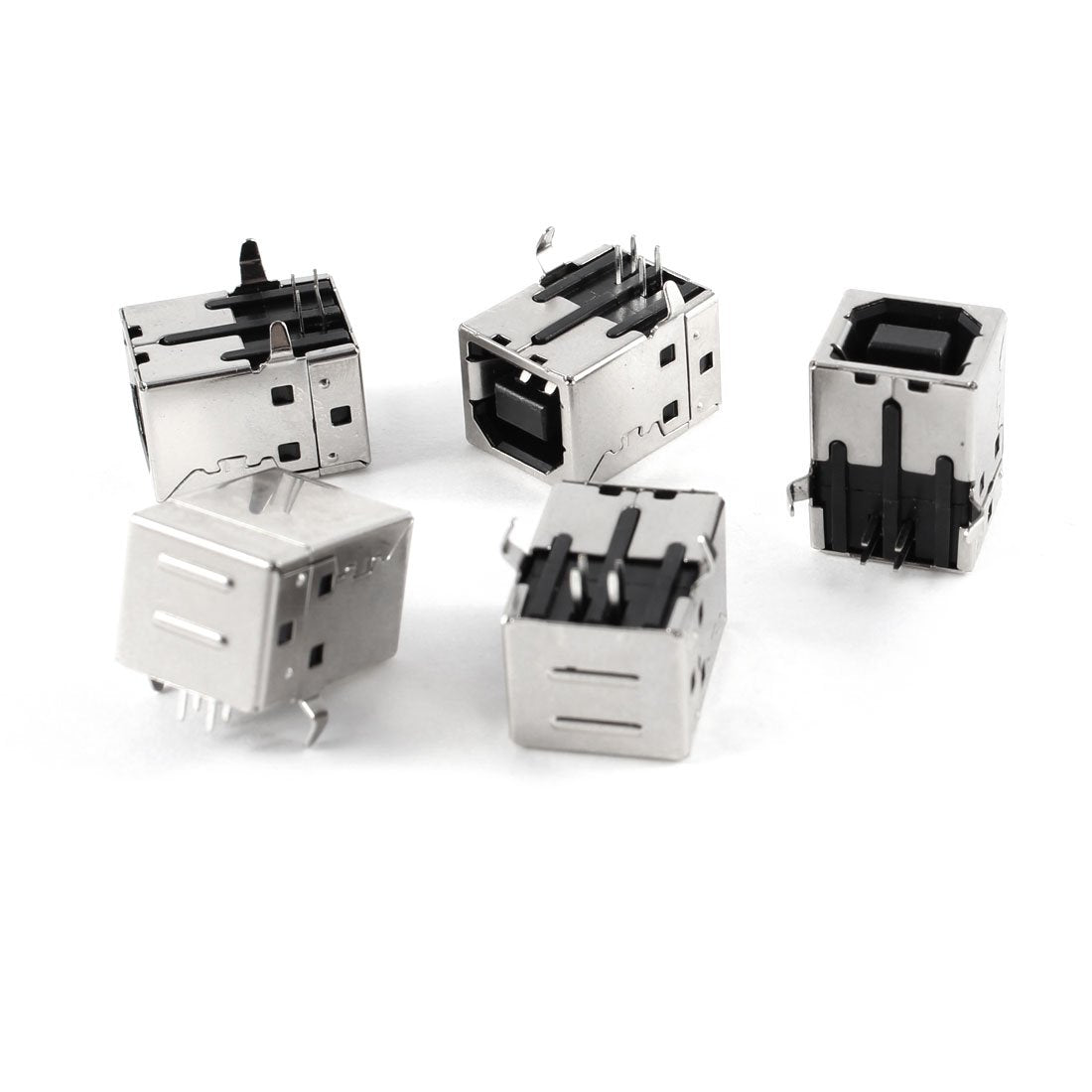 flashtree 5pcs USB Female Type-B Port 4-Pin Right Angle PCB DIP Jack Socket,