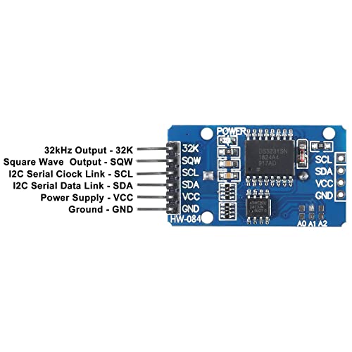 Details: Module Parameters1. Size: 38mm (L) * 22mm (W) * 14mm (H)2. Weight: 8g3. Operating voltage: 3.3-5.5V4. Clock chip: high-precision clock chip DS3231. (there are 3 different chips for this clock module: DS3231N, DS3231SN and DS3231M, we send it by randomly)5. Clock Accuracy: 0-40 ℃ range, the accuracy 2ppm, the error was about 1 minute6. Memory chips: AT24C32 (storage capacity 32K)7. Real time clock generator seconds, minutes, hours, day, date, month and year. And provide valid until the year 2100 leap year compensation8. Chip temperature sensor comes with an accuracy of ± 3 ℃9. IIC bus interface, the maximum transmission speed of 400KHz (working voltage of 5V)10. Can be cascaded with other IIC device, 24C32 addresses can be shorted A0/A1/A2 modify default address is 0x57Pin Description:32KHz:32KHz outputSQW:Active LOW Interrupt or Square wave outputSCL:Serial Clock InputSDA:Serial Data I/OVCC:DC Power PinGND:GroundWiring instructions SCL → A5SDA → A4VCC → 5VGND → GNDPackage Included:3 X DS3231 Clock module (Battery is included)