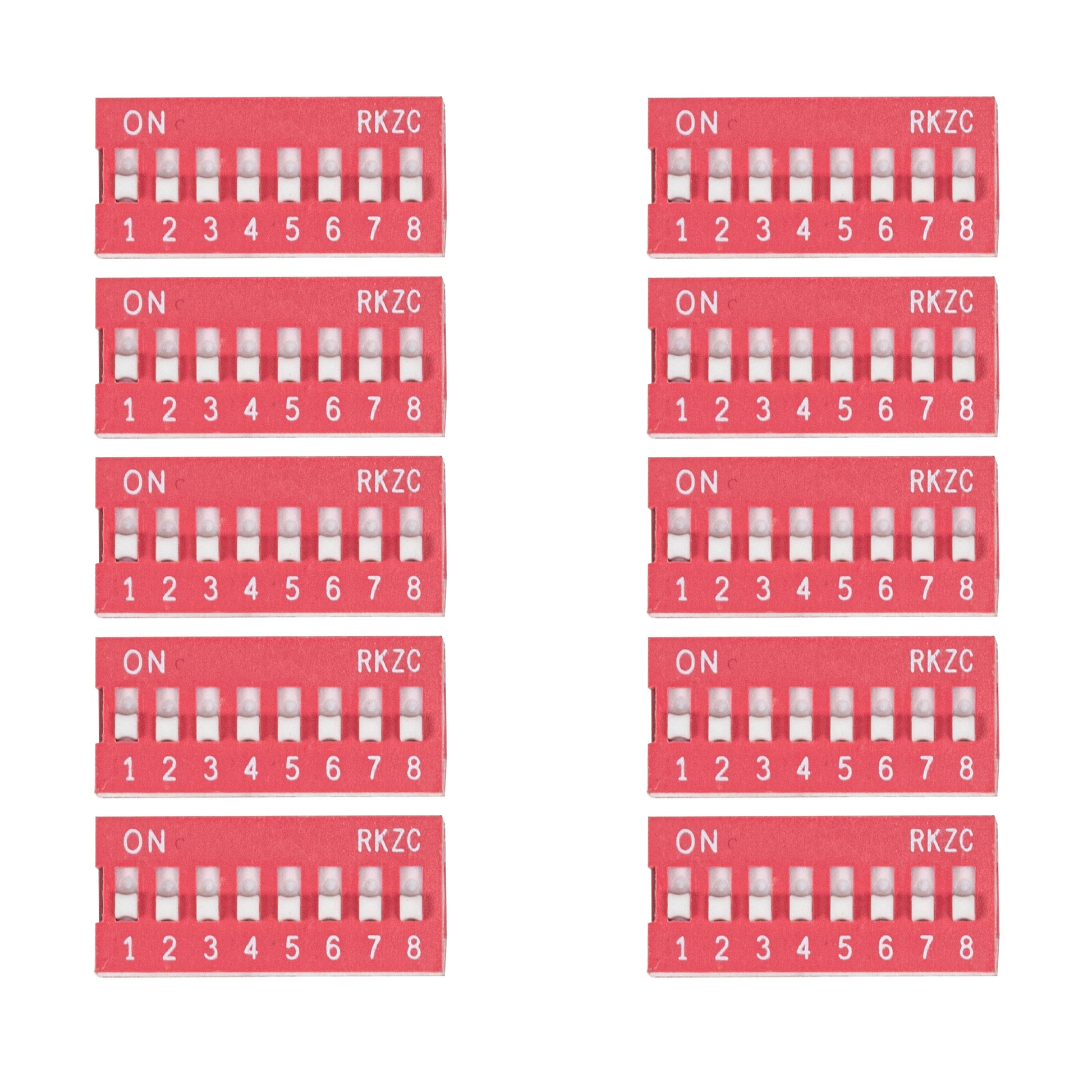 flashtree 10pcs Dip switch coding switch horizontal switch 2p 8 bit 2.54mm red