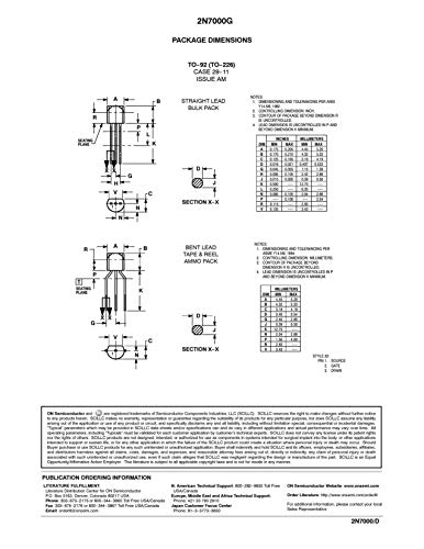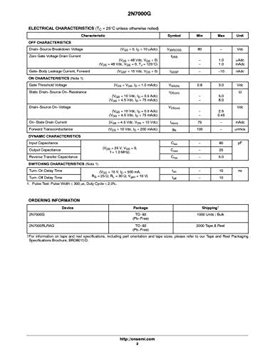 Details: Package includes: 10 pieces 2N7000 N CHANNEL MOSFET Voltage Rated: 60V Current Rating: 0.2A Rds(on): 5 Ohm Package-Type: TO-92