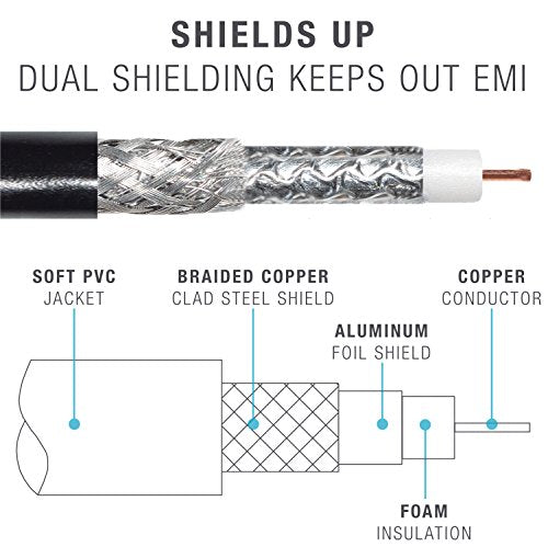 - Built with braided copper shielding, aluminum Mylar shielding and gas injected foam dielectric, for protection against the hum/static encountered when multiple devices are in close proximity of each other.